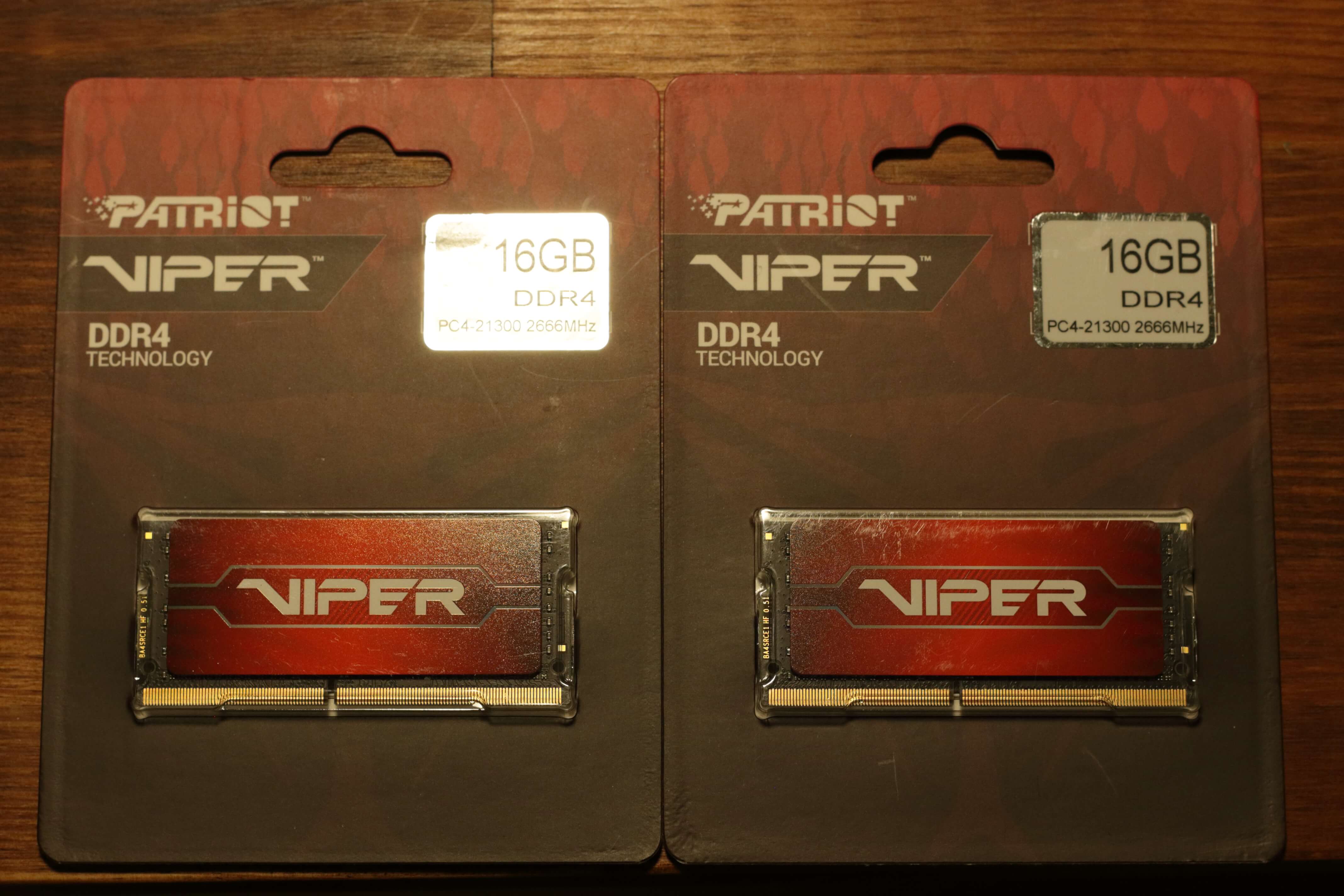 今回は、両方のメモリを16GBに交換し、32GBにしましたが、